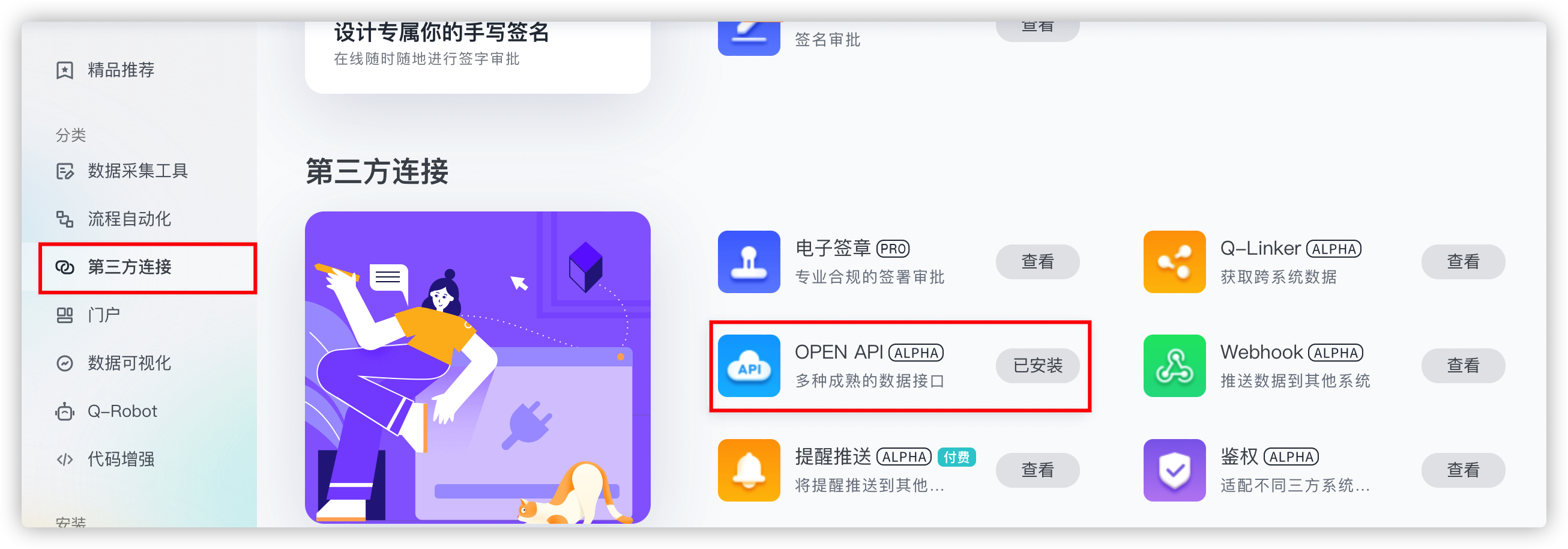 方案清流对接清流对接设置对接设置 在浏览器中打开清流,点击轻商城,点击扩展插件 点击第三方连接,点击OPEN API(如果还没有开通,请参考官方文档开通) 点击配置 设置白名单IP地址(凭证对接、单据对接设置:8.136.117.192、47.110.44.32,审批、基础数据对接无插件版设置:139.198.11.245、139.198.9.112、139.198.29.235,本地安装插件时,填写企业出口IP),复制访问码。 点击要对接的单据,复制浏览器地址栏中“app/”之后“/list”前的内容